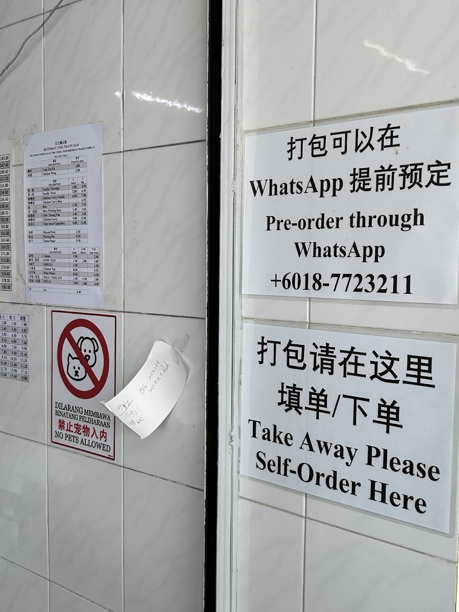 Restoran Yong Tao Fu Sam 釀豆腐 Menu